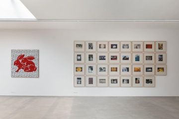 In the 1990s, in addition to painting, she also devoted herself to assemblages and photographs. Her work, based on visual citations of found depictions, dates back to 1991, in which she often used documentation of the changes in the rabbit hero over the years and other evidence of human cultural development, as well as fragments of everyday life. For some of these works, she used various types of damask fabric instead of ordinary painting canvas, and thus returned to the starting point of her artwork with an arch.